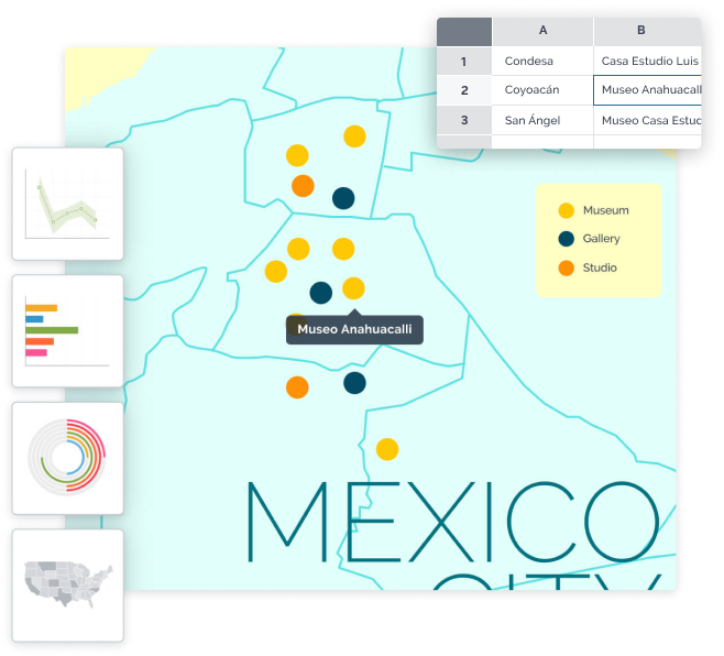 Interaktív diagramokat, térképeket és grafikákat készíthet, amelyek életre keltik a mondanivalóját.